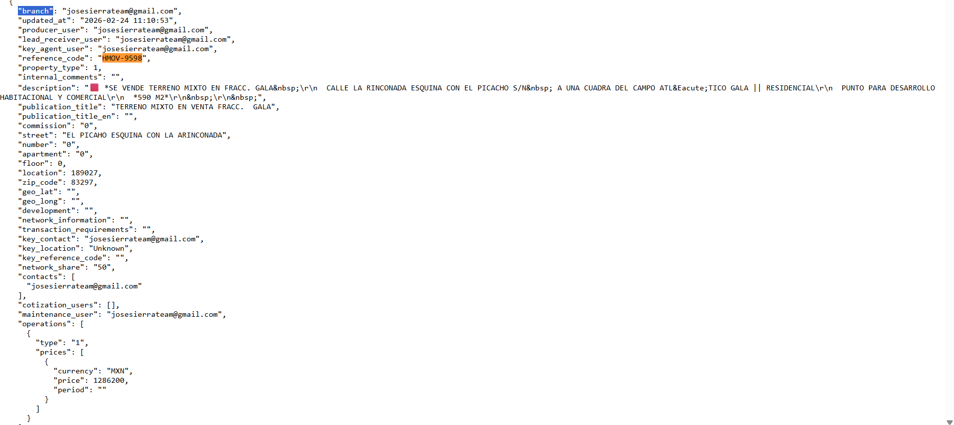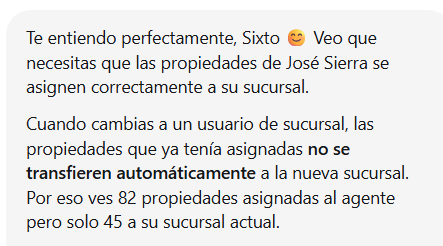Por lo que optamos por dar de baja todas las propiedades para enviarlas nuevamente; sin embargo, la sucursal adecuada siguió sin asignarse correctamente.